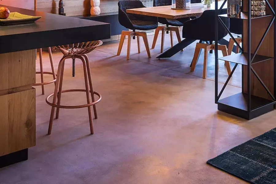 A sleek, high-tech flooring style pairs beautifully with exposed steel beams, concrete finishes, and other industrial elements.