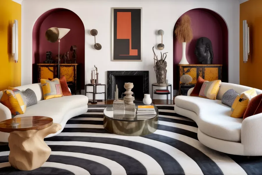 Maximalism is the antithesis of minimalism. It’s all about embracing a bold, vibrant, and opulent style. This trend leads to spaces filled with intense colors, futuristic shapes, and an abundance of textures and patterns.
