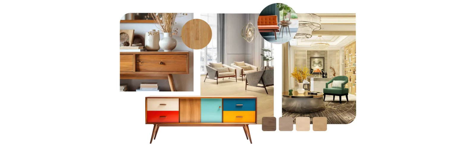 A whimsical nod to the past, New Retro fuses the enduring charm of Midcentury Modernism with present-day design. This trend showcases vivid, geometric patterns, lively hues, and sleek contours, making it an excellent fit for luminous color schemes.