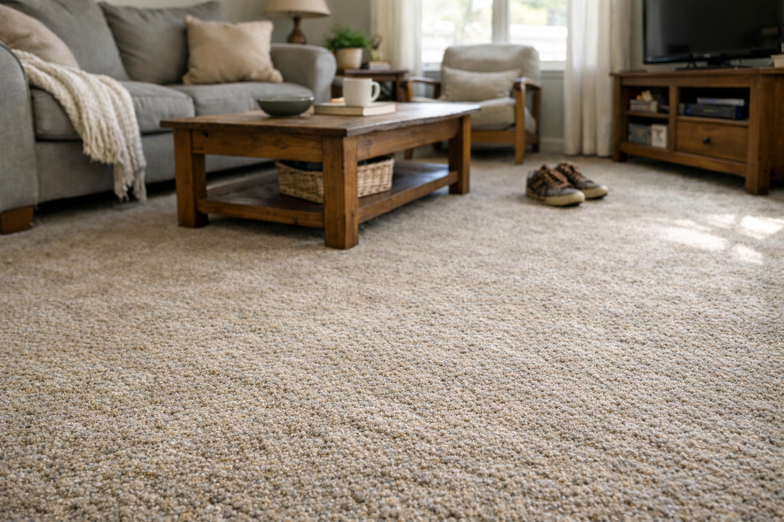 Olefin carpet is not typically chosen for ultra-plush softness. While newer manufacturing techniques have improved feel, olefin remains slightly coarser than premium nylon or high-end polyester options. In everyday living environments, this difference is most noticeable in bedrooms and lounging areas where barefoot comfort matters most.